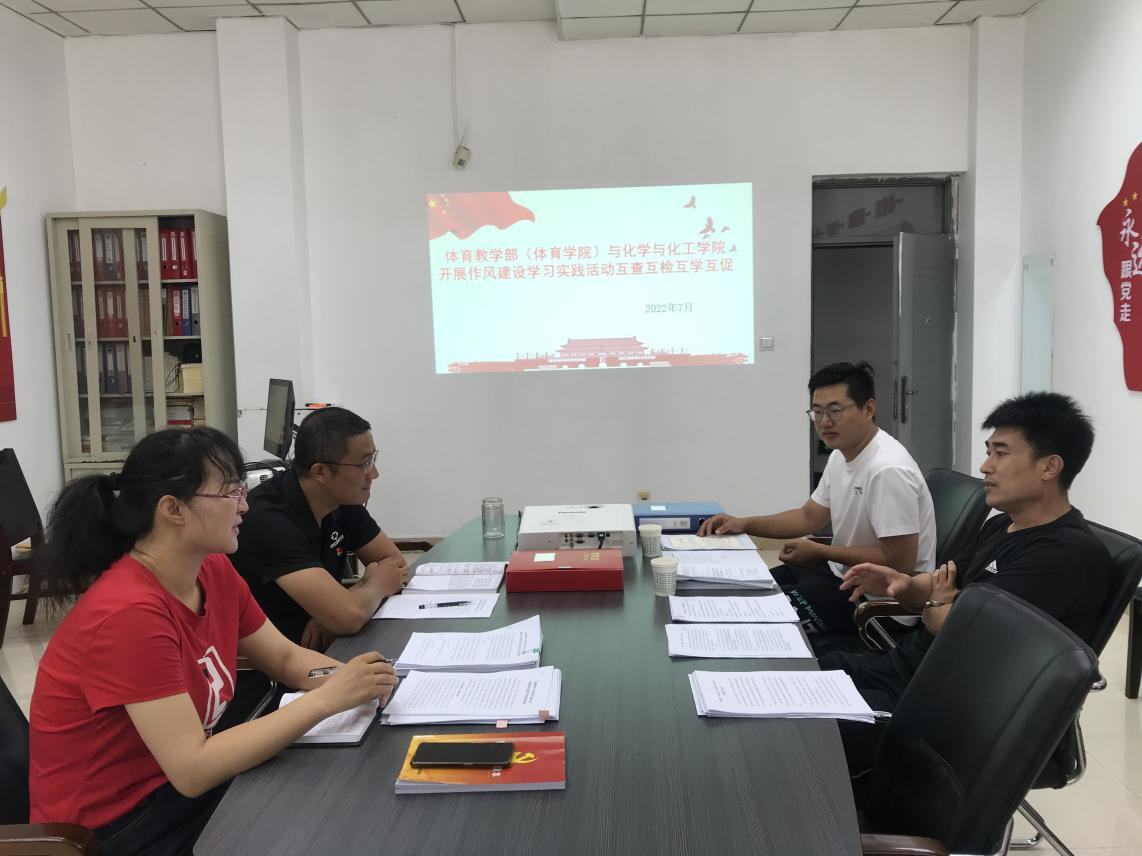 7月21日bat365正版唯一官网党总支与化学与化工学院党委开展了强化作风建设学习实践活动“互查互检互学互促”活动。结合学校强化作风建设学习实践活动的进展情况,围绕结对单位各自工作的开展情况,通过现场听取工作汇报、查看资料、谈话交流等方式,结对单位相互学习并借鉴了开展工作的先进经验和做法,相互取长补短,发现并查找出各自存在的问题和不足,以便日后及时改进和提高。