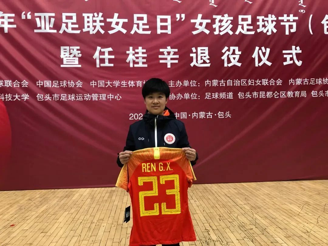 2021年3月8日上午,“亚足联女足日”女孩足球节包头站,32岁的女足国脚任桂辛正式宣布退役,退役仪式上,bat365官网引进了任桂辛担任体育学院教师并兼任学校女子足球队教练。