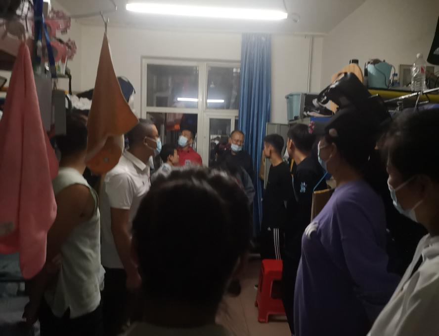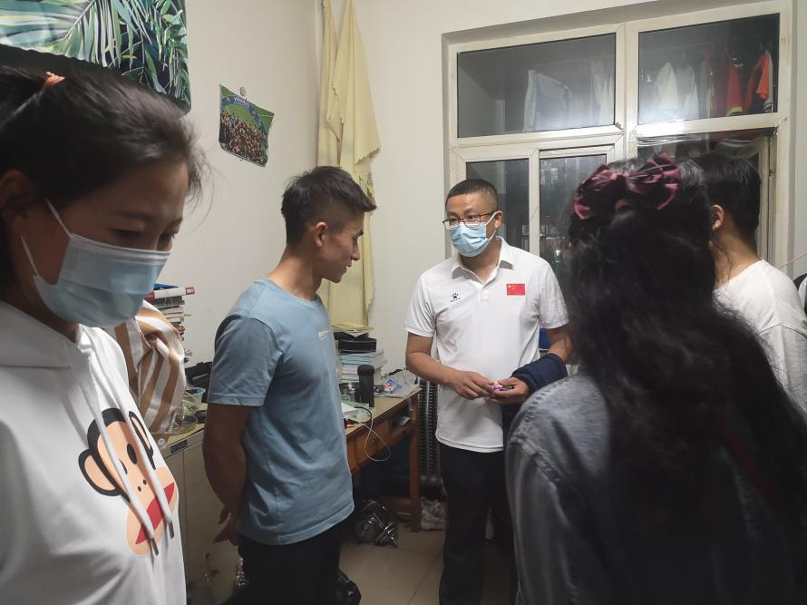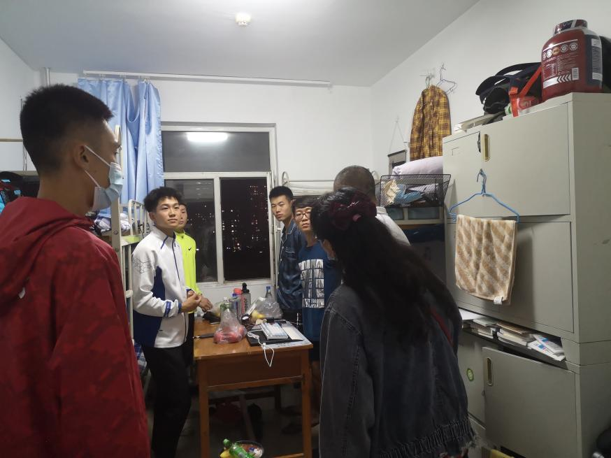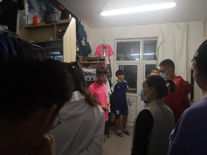 2021年9月16日晚8点,bat365正版唯一官网党总支书记苗凯、党总支副书记武淑琴、副院长张新民、学工办主任赵鑫、辅导员王梦茹及各年级班主任老师对体育教育专业学生宿舍环境及卫生情况进行检查。