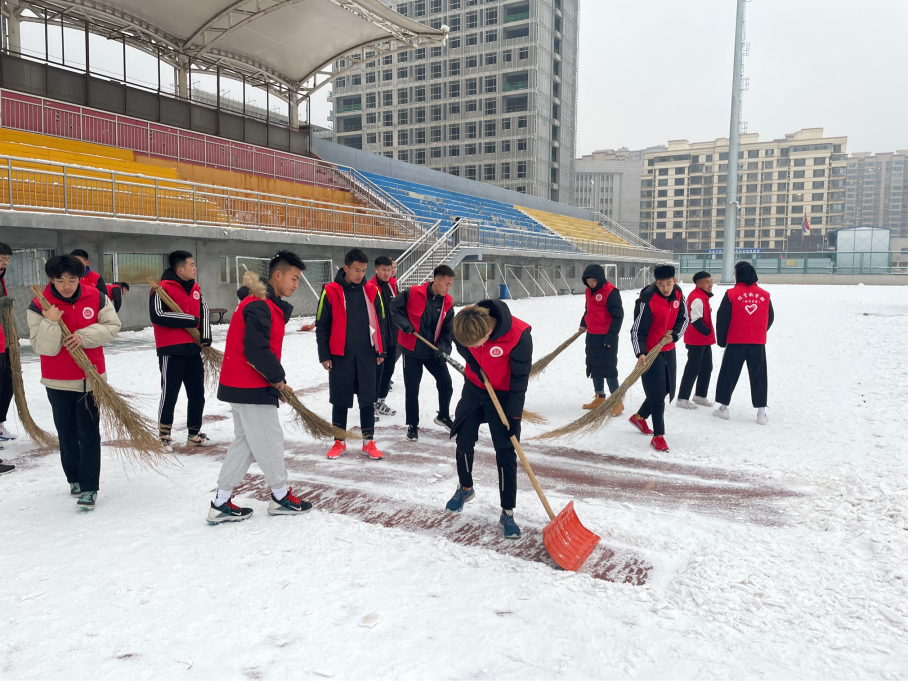 2021年12月8日,包头市迎来了入冬以来的第二场大范围降雪,bat365正版唯一官网2019级和2021级体育教育专业团支部同学主动作为,本着“服务老师,服务同学”的宗旨,组织全体同学对操场及周边道路积雪进行清理,为广大师生的安全保驾护航。