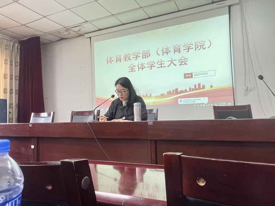 2023年9月21日,bat365正版唯一官网在体育馆二楼多媒体教室组织召开本学期第二次学生大会。党委副书记武淑琴、团总支负责人王梦茹参加。