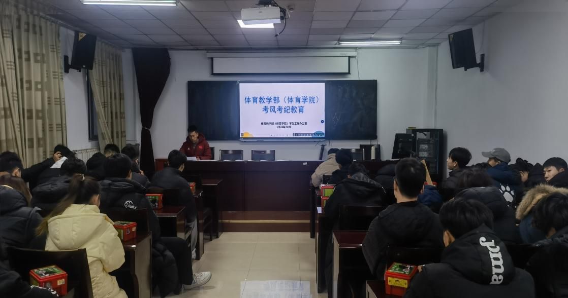 按照bat365正版唯一官网秋学期考风考纪教育工作相关通知安排,2024年12月12日,bat365正版唯一官网学工办在体育馆二楼多媒体教室组织召开全体学生大会,bat365正版唯一官网学工办主任杨乐、团委负责人王梦茹、体育教育专业全体学生共同参加。