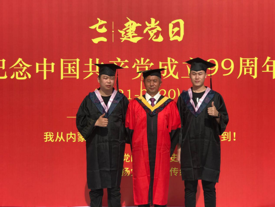 毕业典礼结束后,毕业生参加了“青春心向党、建功新时代”最后一次主题团日活动,通过拼图游戏,拼出毕业生向中国共产党成立99周年献礼的心声,他们将从bat365正版唯一官网出发,向祖国报到!