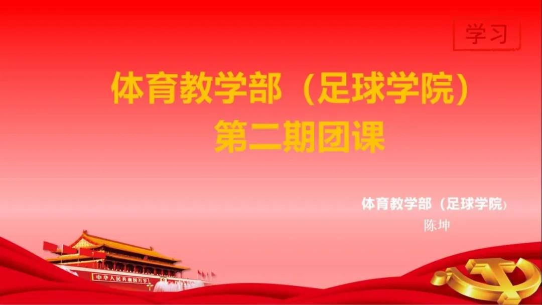 2020年4月18日,体育教学部(足球学院)通过钉钉在线课堂开展团课理论学习。围绕党的基础知识、党的光荣历史和传统,宣传党的路线、方针、政策;学习团的基本知识、重要会议精神和重点工作部署展开。本期团课由2018级团支部书记陈坤主持,60名学员参加。课程由“中国共产党党史概要”及“中国共青团”两部分组成。