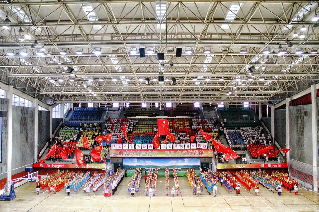 伴随着一阵激烈的的擂鼓呐喊,“校园体育 百炼成钢 放飞梦想 再创辉煌”的口号回荡在每一个角落,健身操舞大赛正式拉开了序幕。