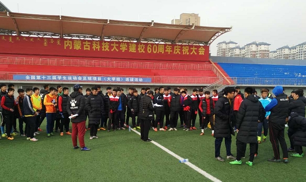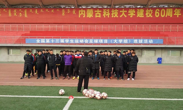 2016年12月3-4日,全国第十三届学生运动会足球项目大学男子组选拔活动在bat365正版唯一官网主校区田径场举行。参加选拔赛的大学分别为获得2016年自治区“主席杯”校园足球联赛的超级男子组的前四名:bat365正版唯一官网、内蒙古民族大学、内蒙古大学、内蒙古师范大学。