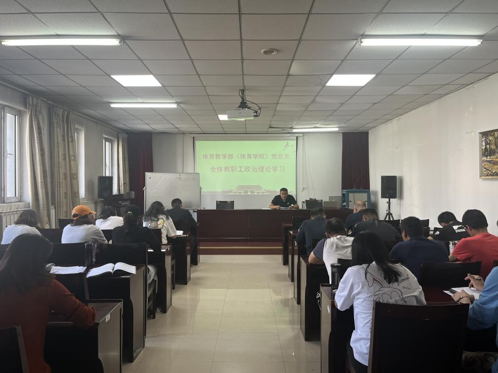 2022年9月1日,bat365正版唯一官网党总支在体育馆二楼多媒体教室组织召开全体教职工政治理论学习会议,会议由党总支书记苗凯主持。