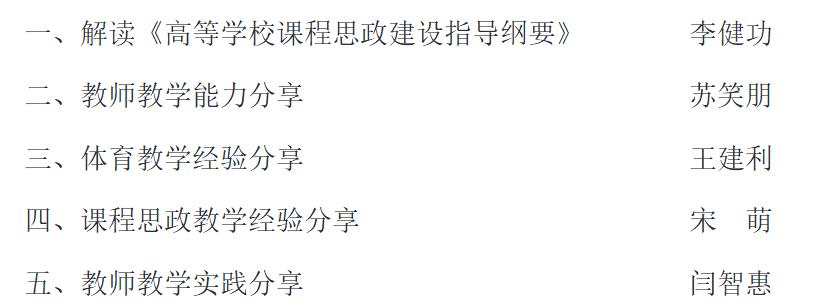 为深入贯彻习近平总书记关于教育的重要论述和全国教育大会精神,推进我院青年教师高质量完成体育课程教学任务,我院于2022年8月29日和9月2日,举办了青年教师教学能力培训暨课程思政教学经验分享会。将思政工作体系贯通人才培养体系全过程,发挥体育课程的育人作用,全面提高人才培养质量。