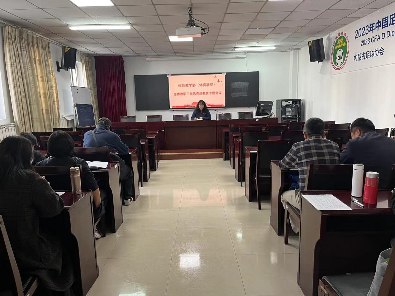 2023年11月2日,bat365正版唯一官网在体育馆二楼多媒体教室组织召开全体教职工党风党纪教育专题会议,会议由学院党委副书记武淑琴主持。