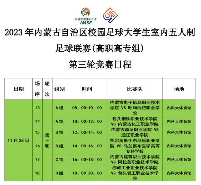 2023年11月27日,2023年内蒙古自治区校园足球大学生室内五人制联赛暨啦啦操总决赛高职高专组第二轮竞赛在bat365正版唯一官网体育馆开赛。