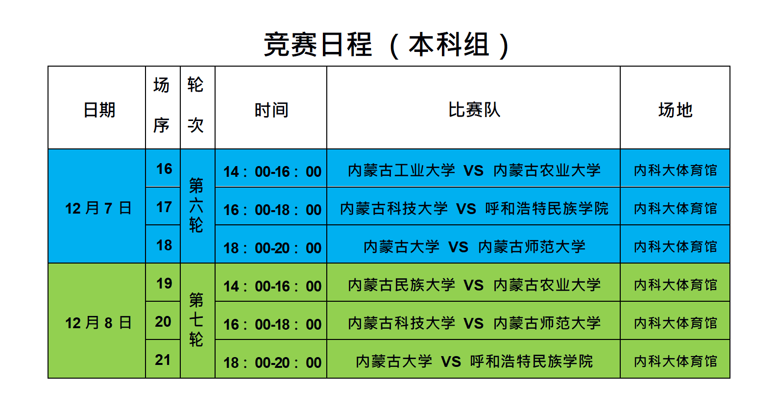 2023年内蒙古自治区校园足球大学生室内五人制联赛暨啦啦操总决赛本科组联赛竞赛日程