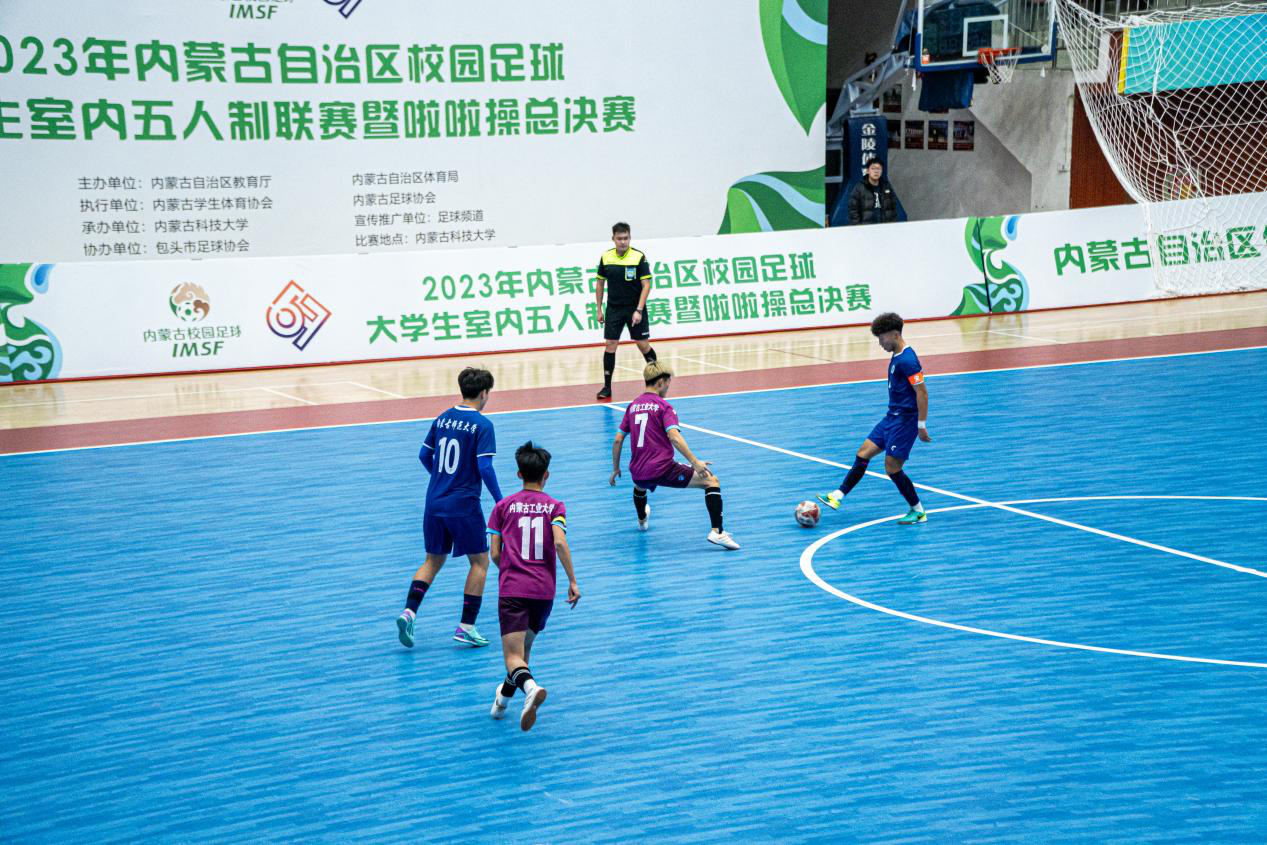 2023年12月6日,2023年内蒙古自治区校园足球大学生室内五人制联赛暨啦啦操总决赛本科组第五轮竞赛在bat365正版唯一官网体育馆开赛。