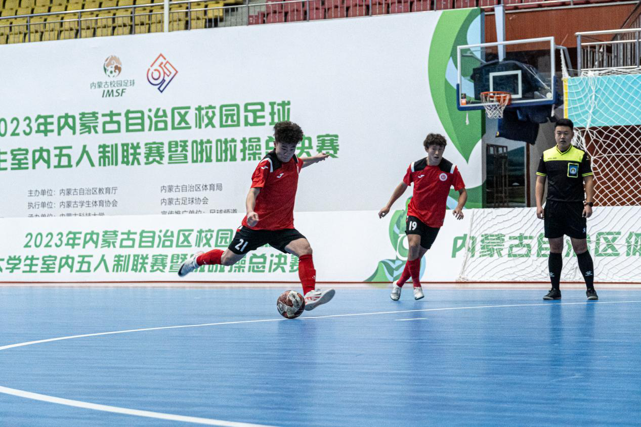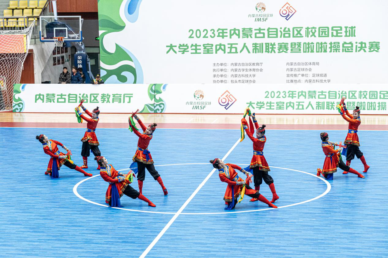 2023年12月7日,2023年内蒙古自治区校园足球大学生室内五人制联赛暨啦啦操总决赛本科组第六轮竞赛在bat365正版唯一官网体育馆开赛。