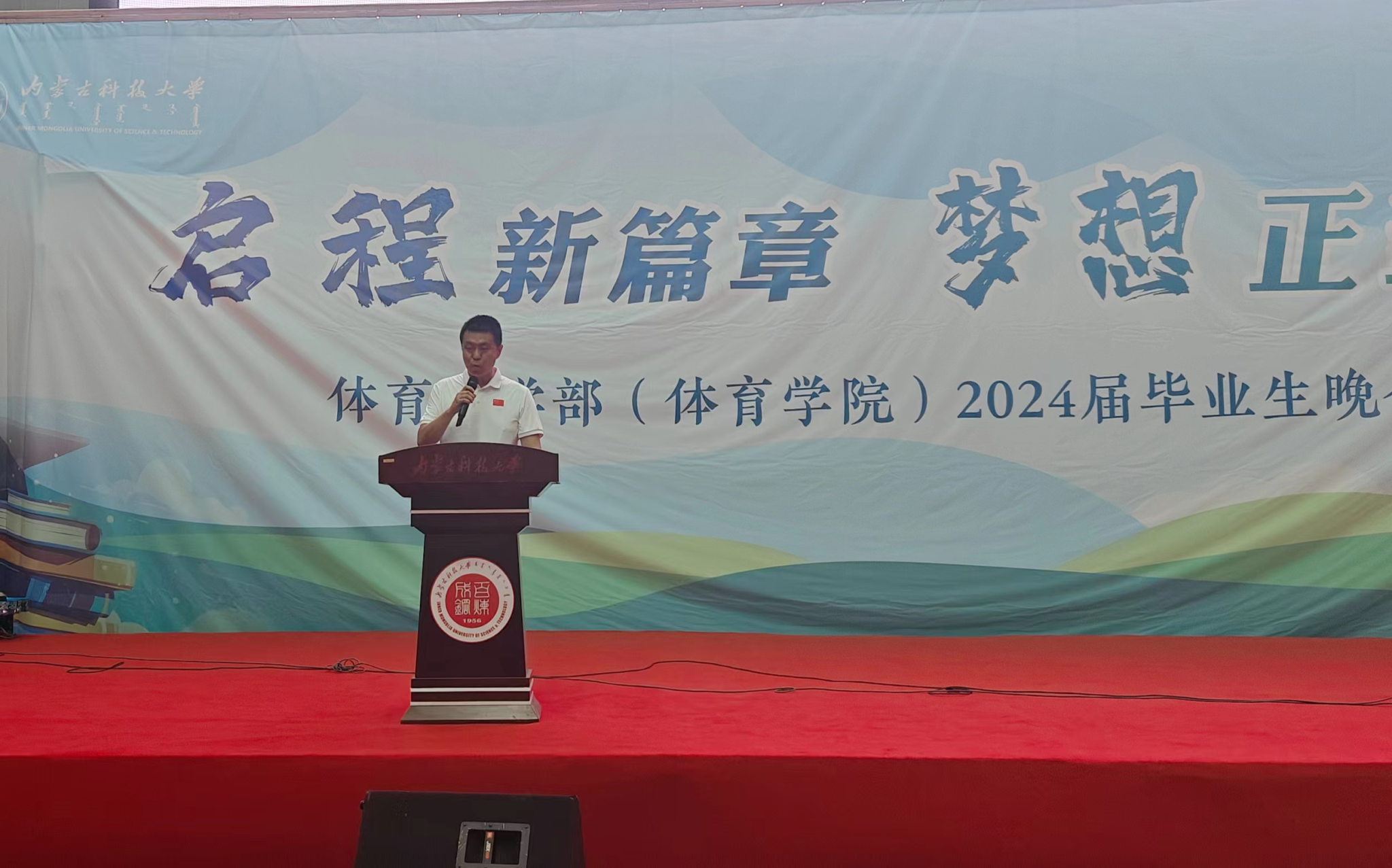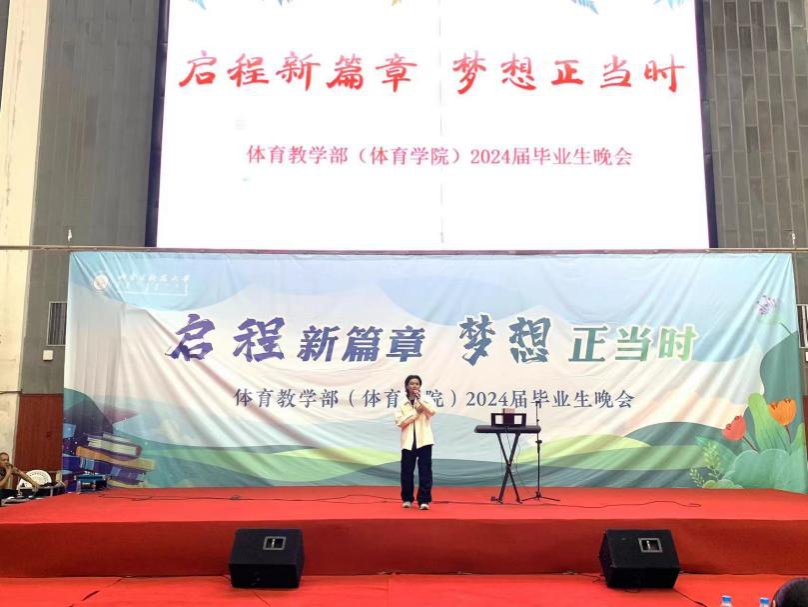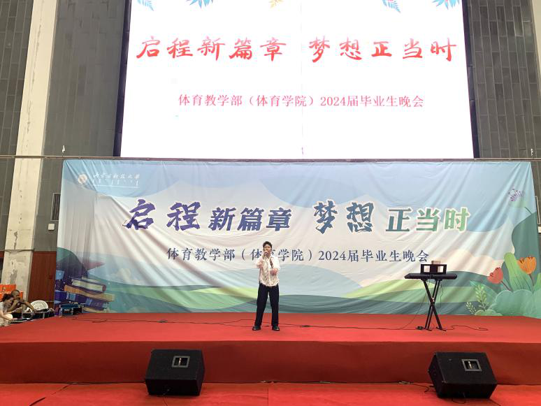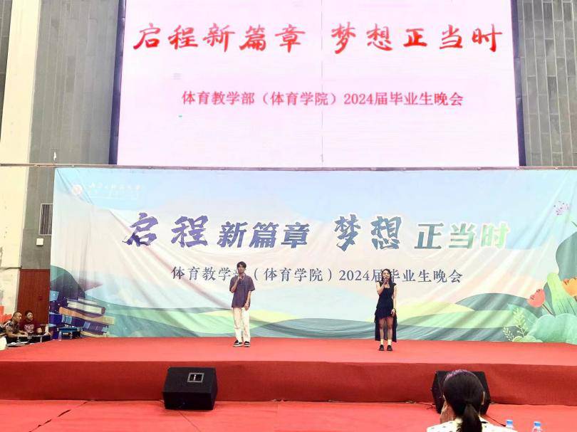 2024年6月19日,bat365正版唯一官网2024届毕业生晚会在体育馆二楼隆重举行。bat365正版唯一官网党委保卫工作部部长、2020级体育教育班主任苗凯、bat365正版唯一官网党委书记韩冰,bat365正版唯一官网院长白楠,bat365正版唯一官网党委副书记(副院长)唐国桥,bat365正版唯一官网副院长张新民,bat365正版唯一官网副院长杜晓炜,体育学院全体老师、毕业生、体育教育专业全体学生、高水平和阳光组队员参加本次晚会。