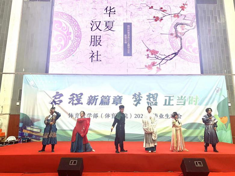 精彩节目依次上演,歌曲《拯救》、《海阔天空》、《只对你有感觉》,点燃了观众们的热情,舞蹈《走马》显示出体育学子无限的活力,华夏汉服社带来的《汉服秀》,让我们共同欣赏中华传统服饰的魅力。