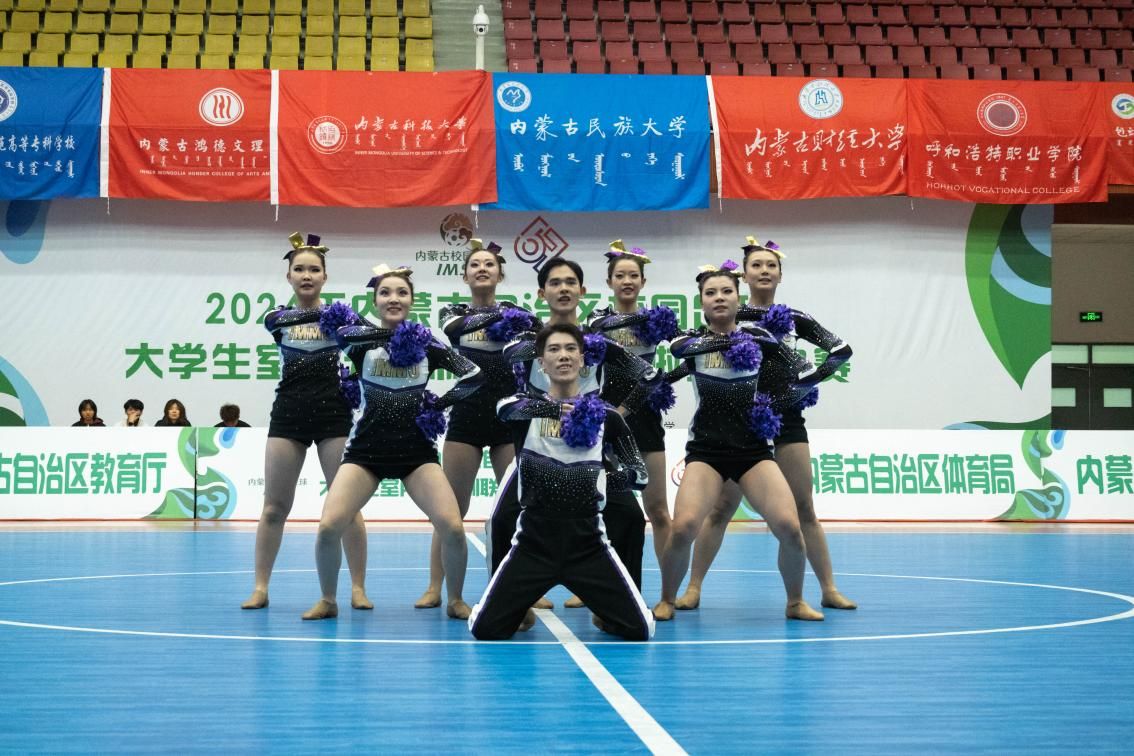 啦啦操赛项内蒙古大学、bat365正版唯一官网、锡林郭勒职业学院队获得一等奖,内蒙古民族大学、内蒙古财经大学、呼和浩特职业学院、包头轻工职业技术学院队获得二等奖,