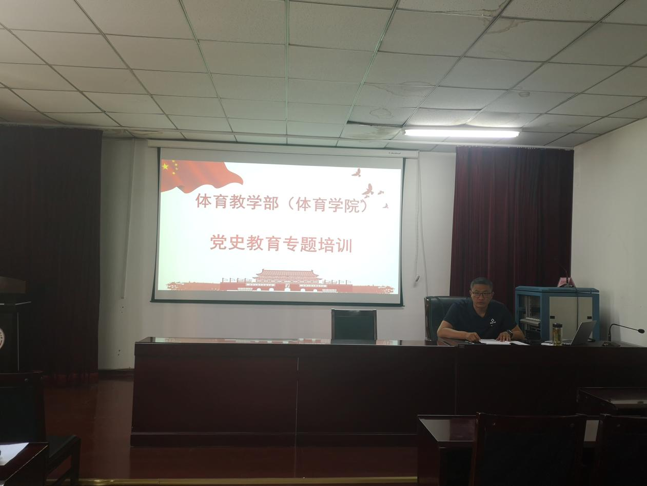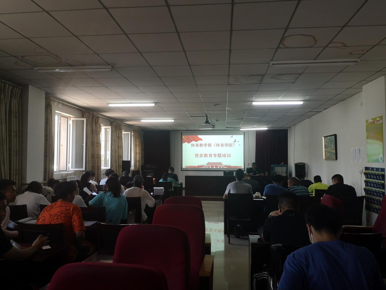 7月7日,bat365正版唯一官网党总支在体育馆二楼多媒体教室开展党史学习教育专题培训,全体教职工党员、学生党员和积极分子参加此次培训。