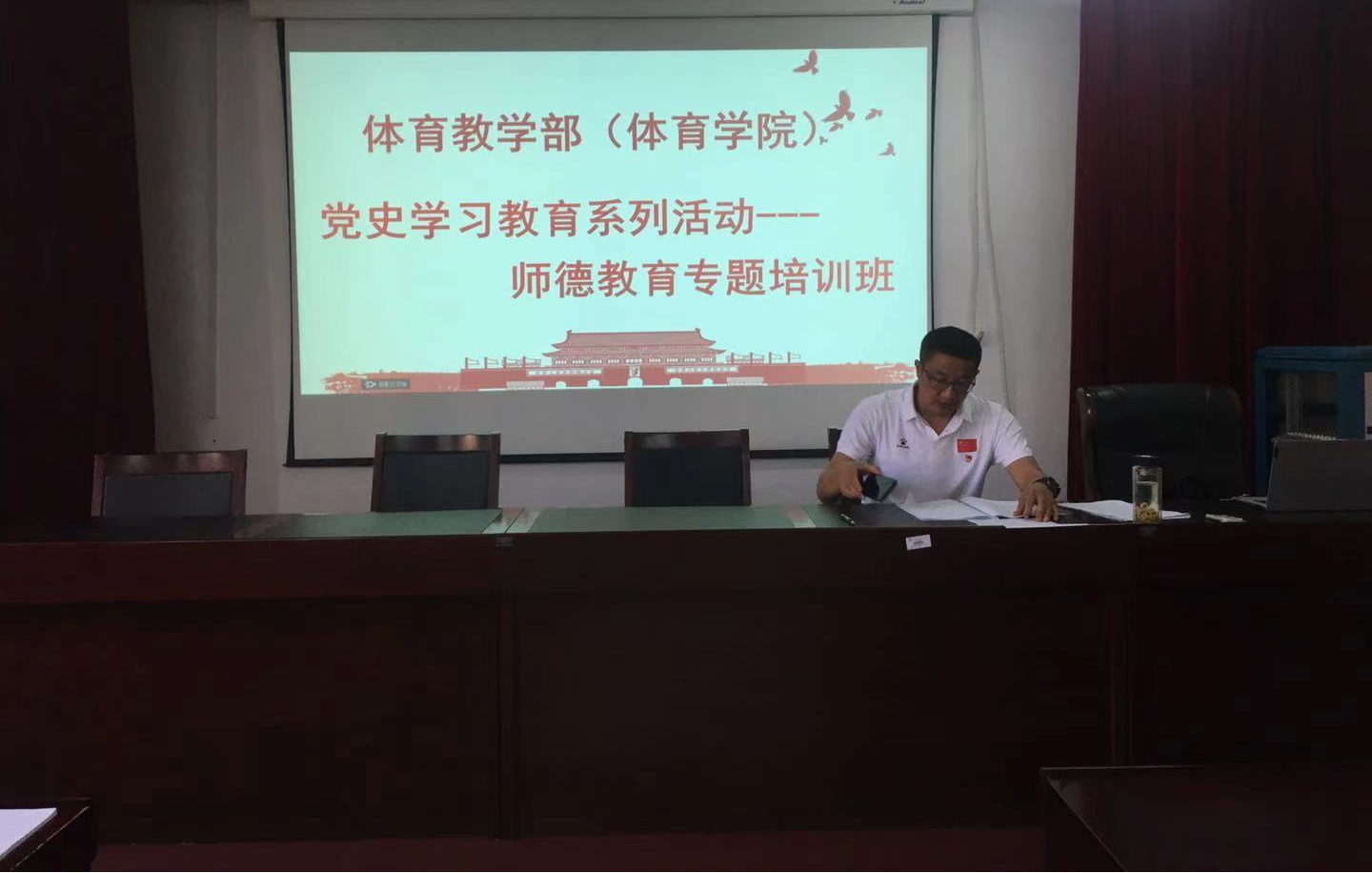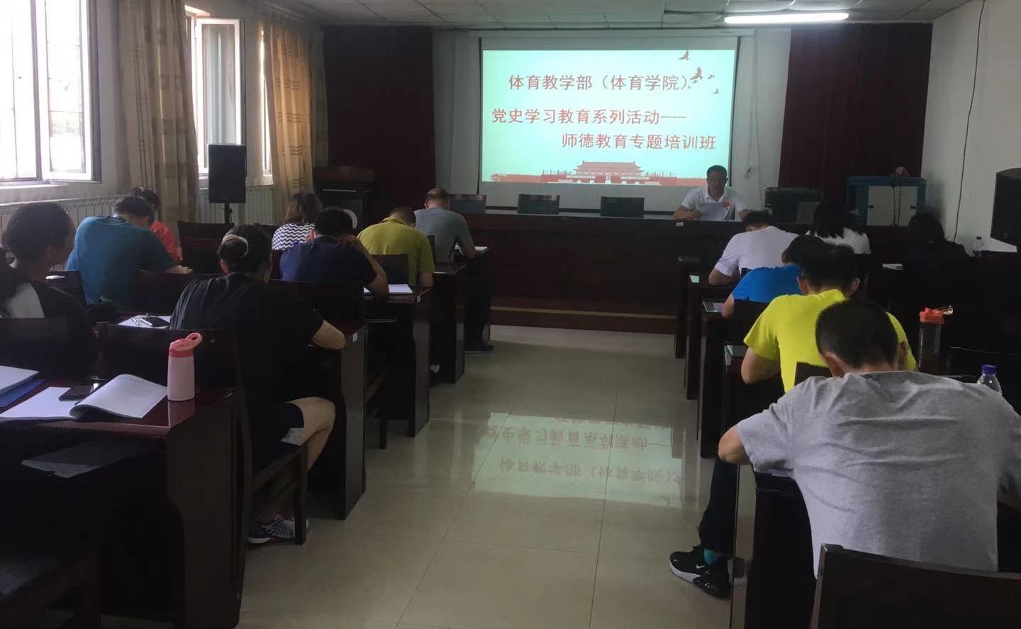 为全面贯彻落实习近平总书记关于教育的重要论述和全国教育大会精神,提高广大教师思想政治素养和职业道德水平,2021年7月16日,bat365正版唯一官网党总支在体育馆二楼多媒体教室举办党史学习教育——师德教育专题培训班。本次读书班采取现场教学、视频学习、学习研讨等学习形式,学习氛围浓厚,取得了良好的学习效果。