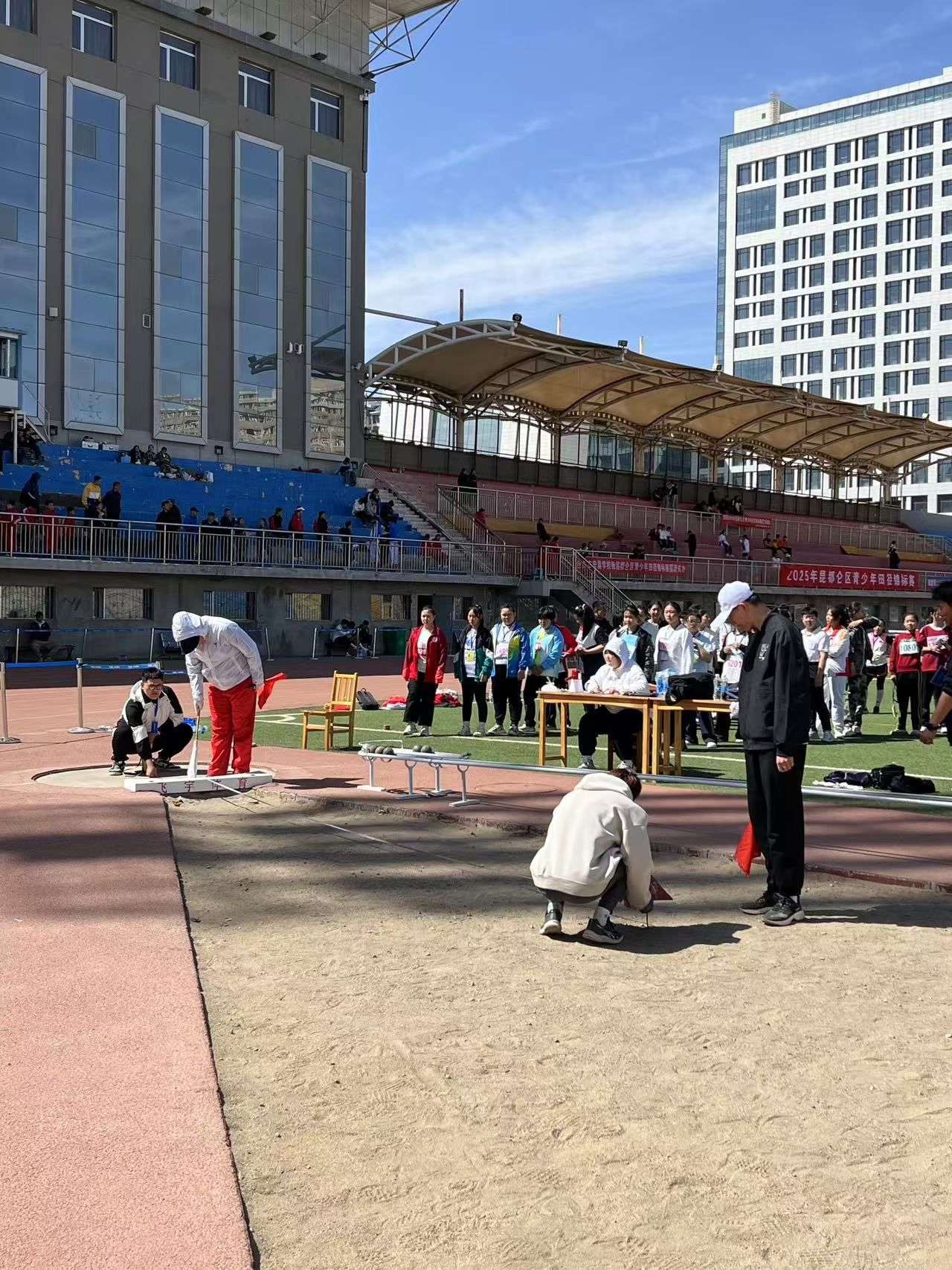 比赛期间突逢大风天气,师生裁判团队始终坚守岗位,克服恶劣天气影响。检录组细致核对运动员信息,发令组精准把控起跑指令,终点计时组以毫米级精度记录成绩,田赛组严格判定投掷与跳跃动作合规性。全体成员以“零失误”表现赢得赛事组委会高度评价:“裁判团队专业、高效,是赛事成功的关键!”