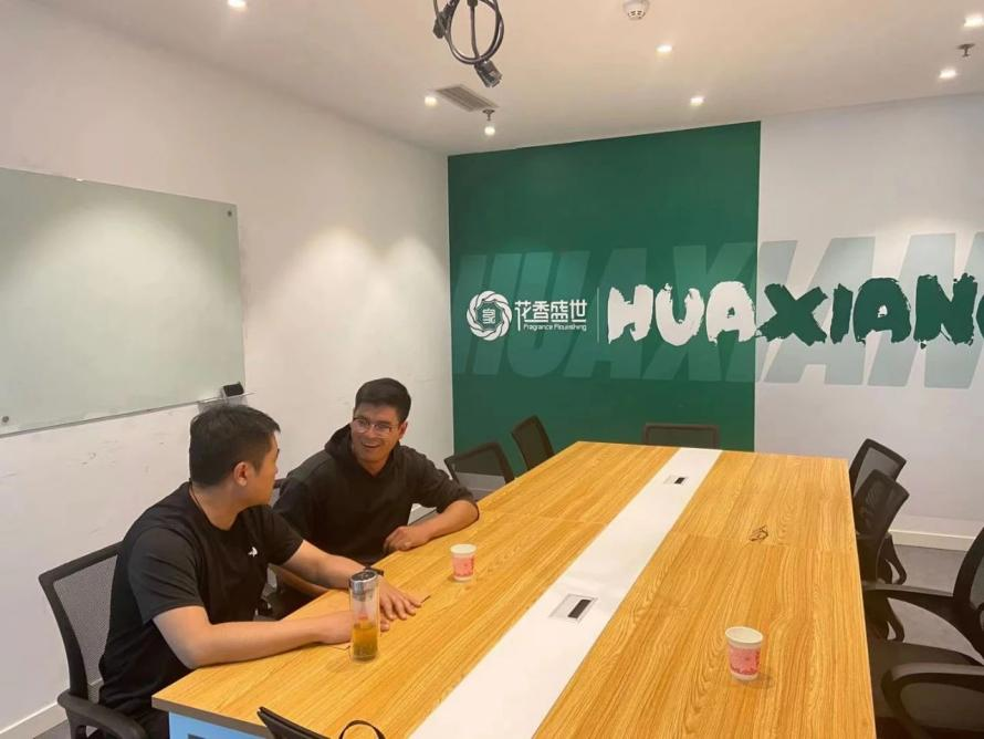 在北京花香盛世国际体育文化发展有限公司,王丰和公司负责人胡先文、招聘工作人员以及毕业生李鹏飞进行了座谈。